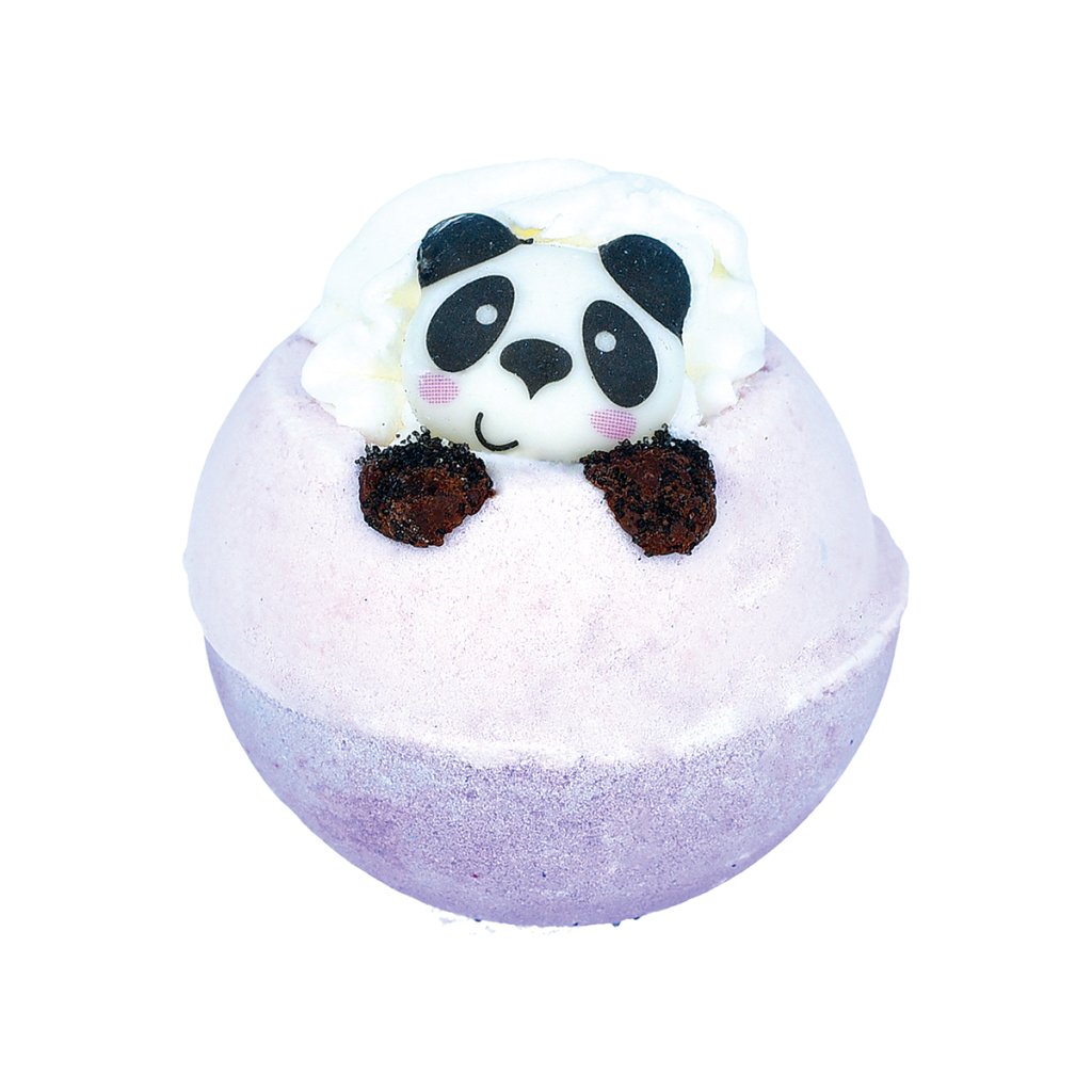 Roztomilá panda vnesie do každodenného kúpeľa pohodu aj úsmev. Po vhodení do vody sa začne jemne rozpúšťať, šumieť a farbiť kúpeľ do nežného fialového odtieňa. Esenciálne oleje z may chang a geránia prevoňajú kúpeľňu sviežou vôňou, ktorá uvoľňuje napätie a podporuje dobrú náladu, zatiaľ čo sa kakaové maslo postará o vašu pokožku.