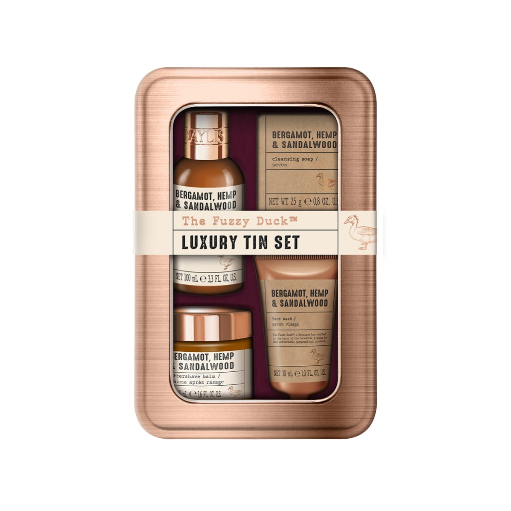 V prémiovej kolekcii starostlivosti pre mužov The Fuzzy Duck sa spája divoká krása prírody s gentlemanskou eleganciou a sofistikovaným vzhľadom. Rustikálna estetika inšpirovaná prírodnými materiálmi kombinuje vínovej a prírodné tóny s bronzovými prvkami a s etiketami v typickom lekárnickom štýle. Vytvorené s jedinečnou vôňou, ktorá spája hrejivé konope s jemnými tónmi santalového dreva a štipkou energizujúceho bergamotu.
