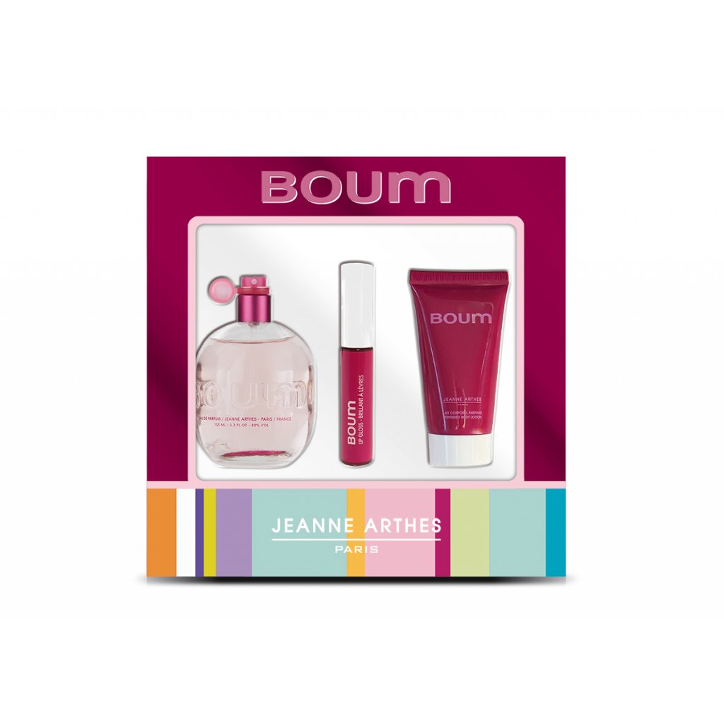 Darčeková sada obsahuje parfumovanú vodu, lesk na pery a telové mlieko s ovocnou vôňou jahôd a čiernych ríbezlí s kvetinovými tónmi ruží a pivoniek.