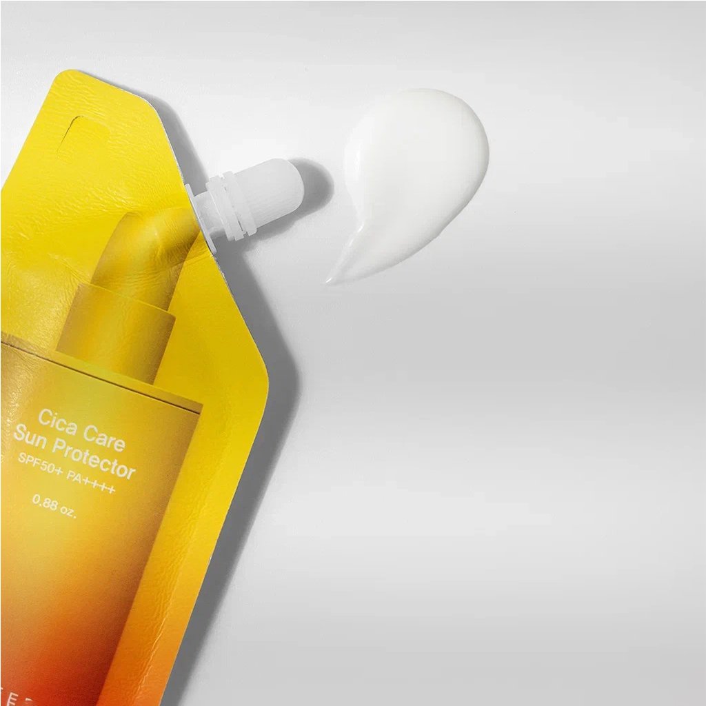 Ochranný pleťový krém Cica Care Sun Protector obsahuje extrakt z Centella Asiatica, ktorý upokojuje citlivú a podráždenú pleť, chráni ju pred poškodením a vyživuje. Tento krém zjednocuje tón pleti, podporuje prirodzenú tvorbu kolagénu a chráni pred UVA a UVB žiarením s vysokým SPF50+ PA++++.