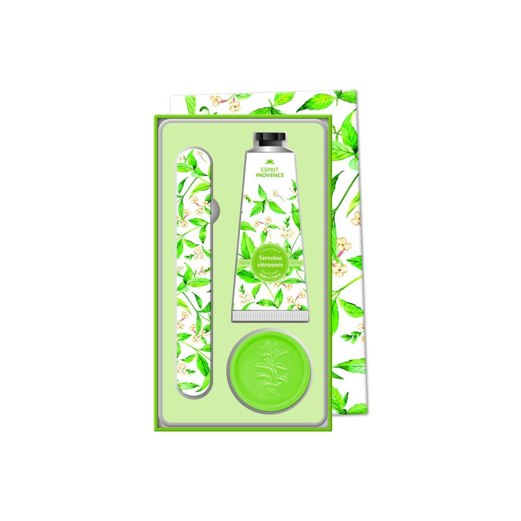 Elegantná darčeková sada starostlivosti o ruky od značky Esprit Provence so sviežou vôňou verbeny predstavuje ideálny tip na darček aj praktického spoločníka pre každodennú starostlivosť o ruky. Sada obsahuje všetko potrebné pre čisté, hydratované a upravené ruky – krém na ruky, tuhé mydlo a pilník na nechty v kompaktnom prevedení vhodnom aj na cesty.