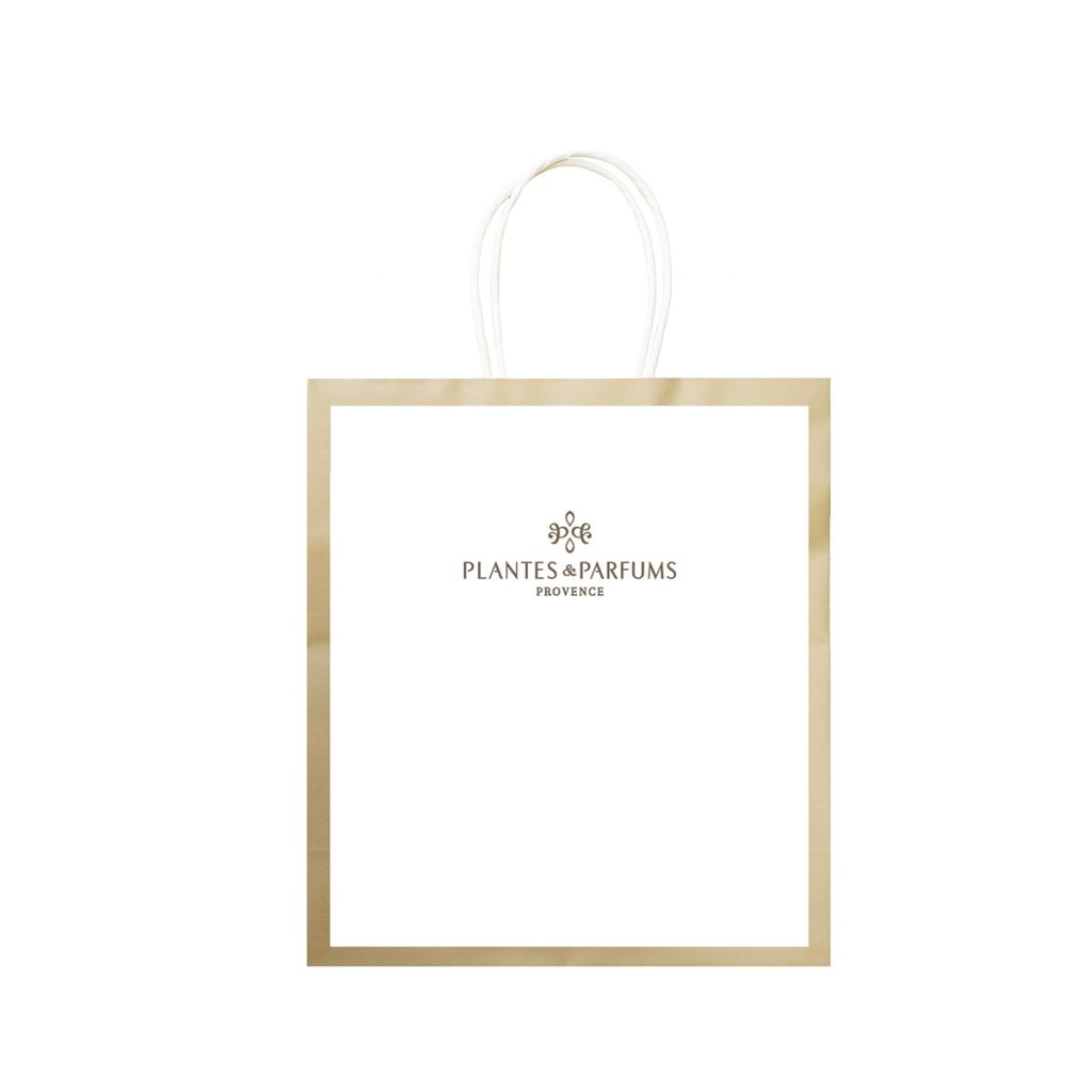 Malá darčeková taška s logom francúzskej značky Plantes & Parfums de Provence.