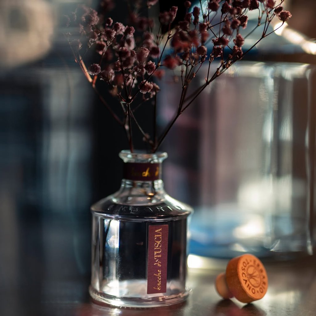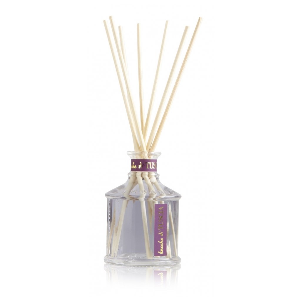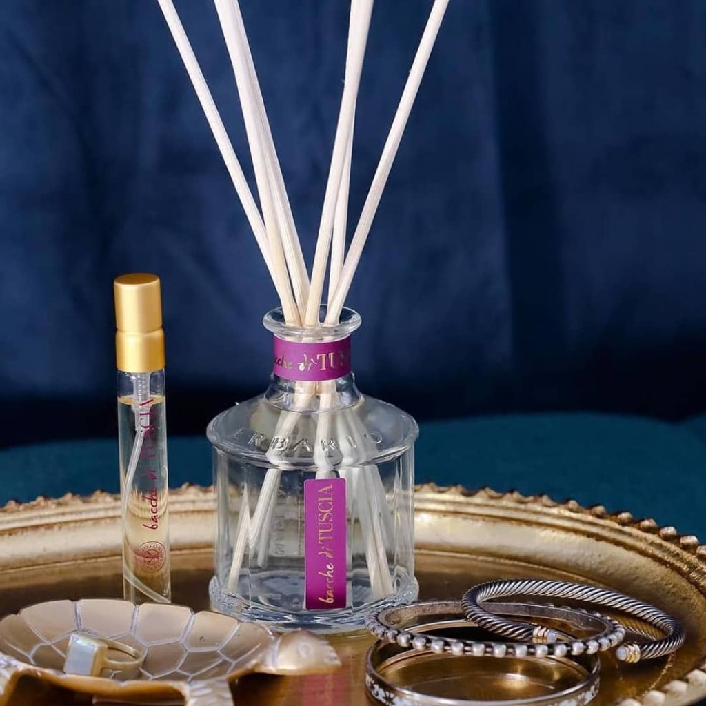 Vonný difuzér talianskej značky Erbario Toscano s obľúbenou očarujúce, tajomnú vôní - Dary Toskánska. Nová kolekcia Bacche D'Tuscia s neodolateľnou ovocnou vôňou s kvetinovými tónmi a koreneným základom vás zavedie do čarovnej Toskánske krajiny, ktorá je preslávená nádherným ovocím a neodolateľnými vôňami. Krajina plná spomienok a inšpiráciou. Nechajte sa touto vôňou zaviesť do čarovného raja, ktorá prebudí vo vašom srdci túžbu po dobrodružstve. Nádherný dekoratívny prvok vnesie eleganciu a nádhernú vôňu do každého priestoru. Objem: 100ml, Súčasťou balenia je 5 ratanových tyčiniek. Vyrobené v Taliansku