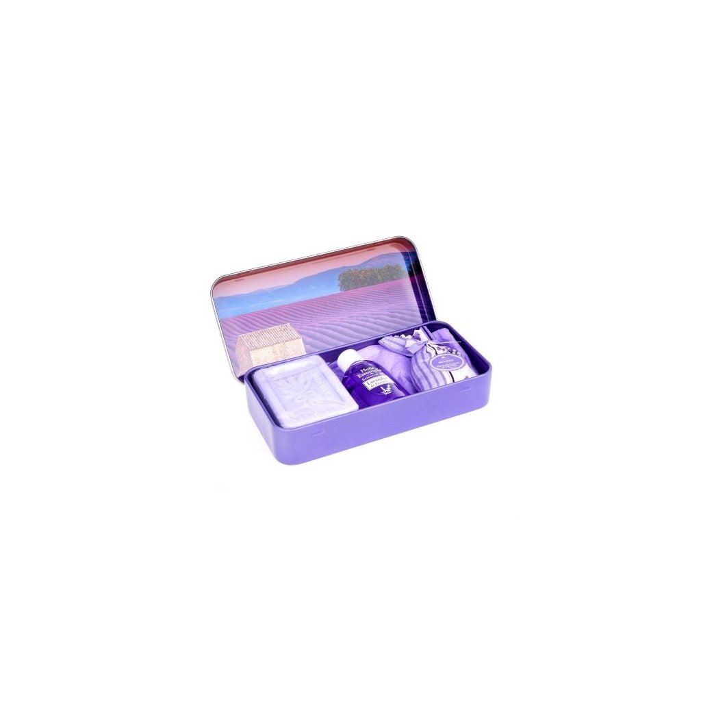 Šetrne čistiace mydlo, vonný vrecúško so sušenou levanduľou a miniatúra esenciálneho oleja prevonia vašu pokožku a váš domov upokojujúce vôňou levandule, ktorá odbúrava stres a napomáha lepšiemu spánku. Či už setom obdarujete svojich blízkych alebo seba, poteší vás praktická plechová krabička s motívom z francúzskeho Provence. 100% čistej a prírodné Objem: 60g + 12ml, Vyrobené vo Francúzsku.