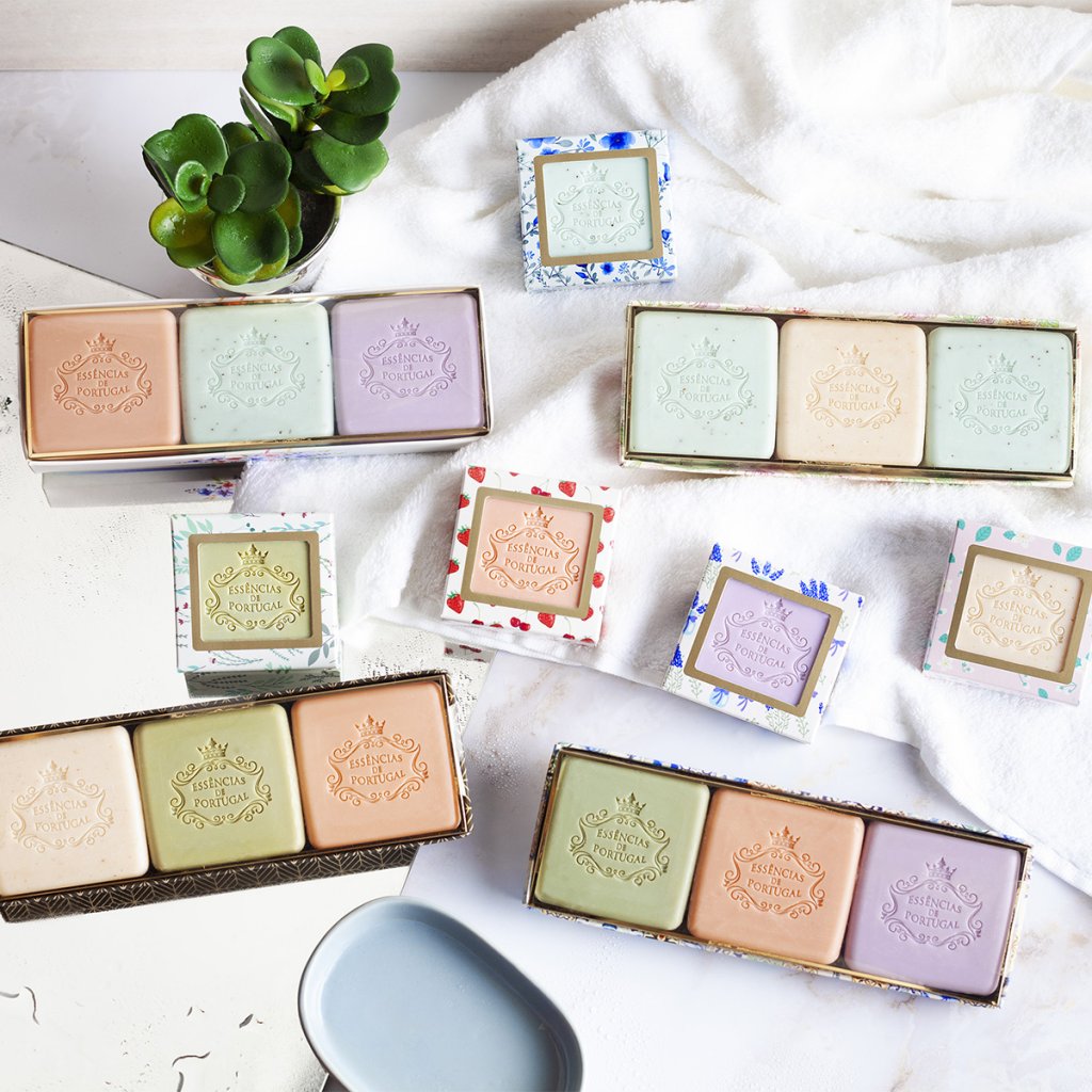 Essencias de Portugal Sada tuhých mydiel - Levanduľa, Fialka & Červené ovocie, 3x80g