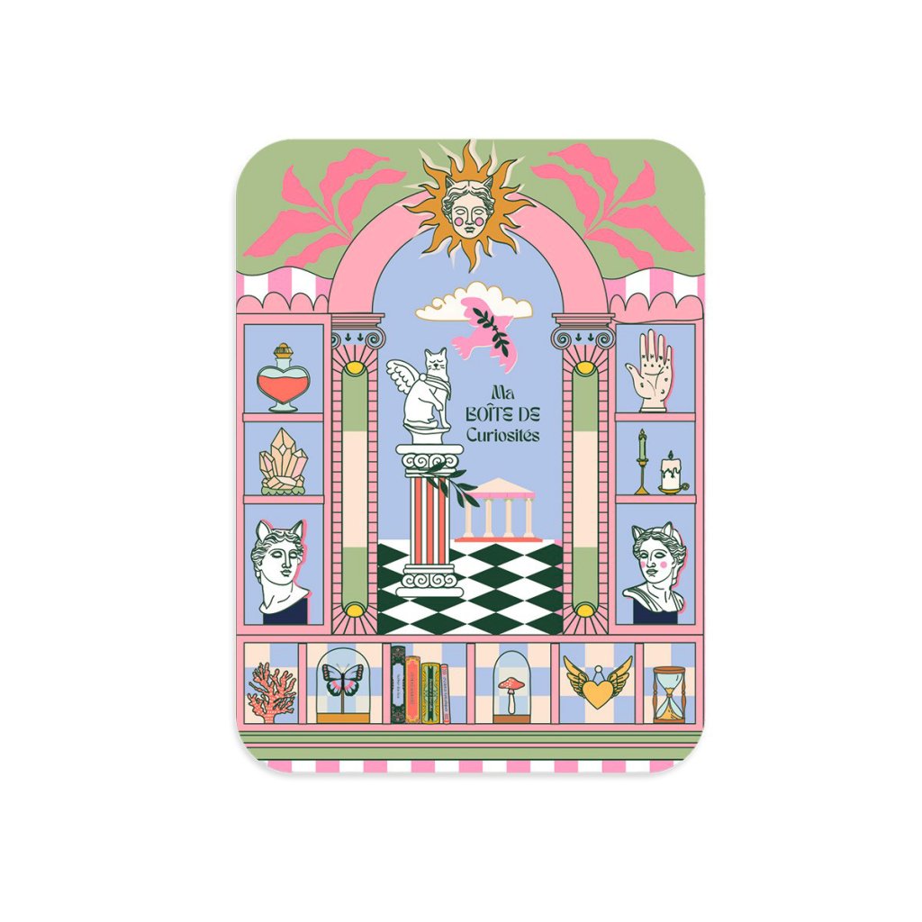 Vstúpte do poetického kabinetu kuriozít, kde fantázia ožíva v každom detaile. Kovová dóza z kolekcie Galerie des Songes od značky Hirondelles & Cie je malým umeleckým dielom, ktoré prepája snový svet symbolov, jemné pastelové farby a originálnu ilustráciu od talentovanej francúzskej ilustrátorky Créy Bisontine.