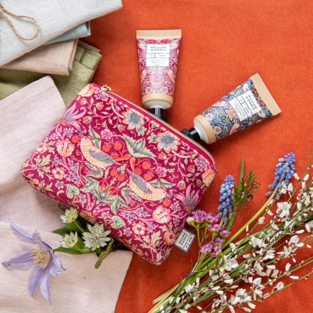 Súprava krémov na ruky s lákavou vôňou pačuli a červeného ovocia s hrejivým nádychom kardamómu. Vyživujú, hydratujú pokožku a zanechávajú ochrannú bariéru. V pestrej darčekovej taštičke so vzorom od Williama Morrisa.