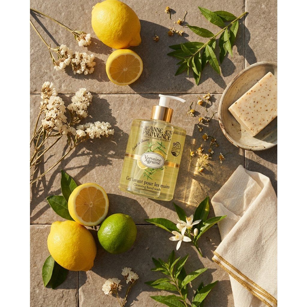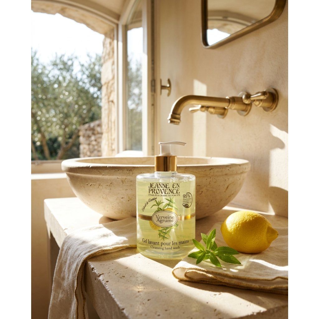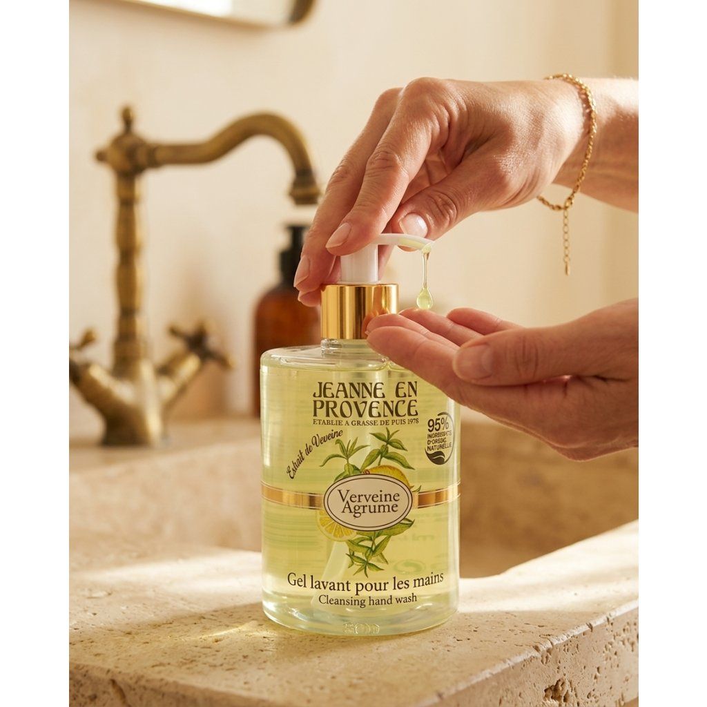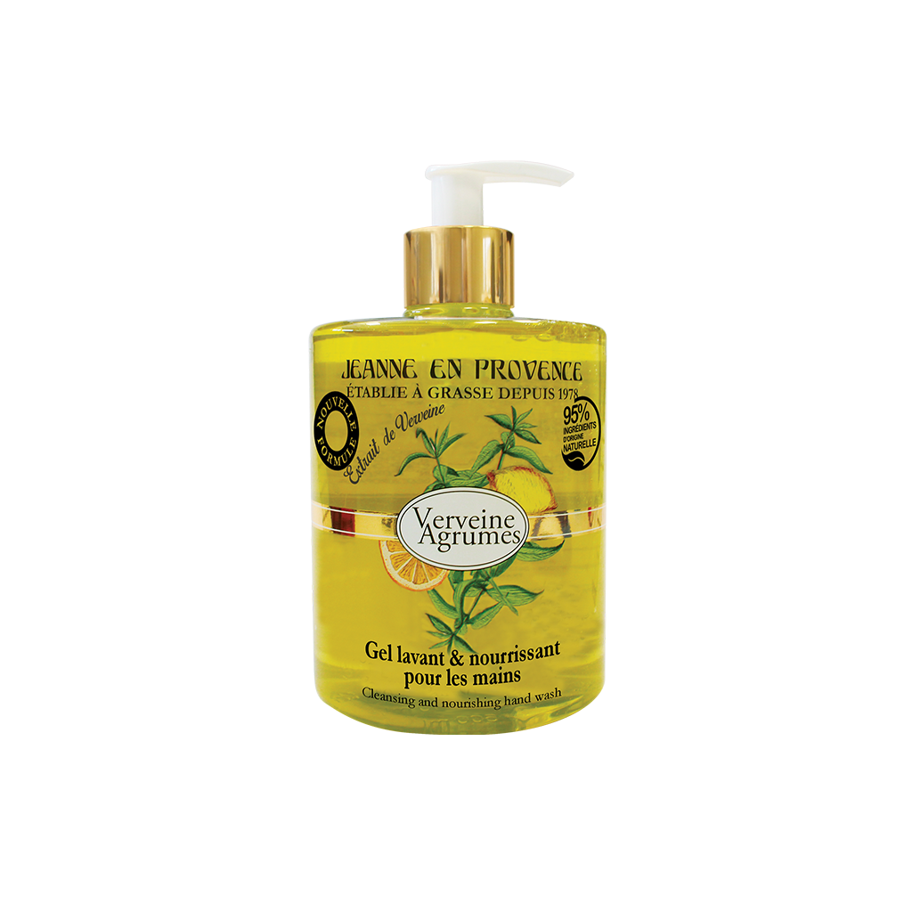 Umývací gél na ruky francúzskej značky Jeanne en Provence sa sviežou vôňou verbeny a citrusov. S obsahom prírodného glycerínu, 100% rastlinného olivového oleja a esenciálnych olejov z verbeny a citrónu. Objem: 500ml, V praktickom balení s pumpičkou.