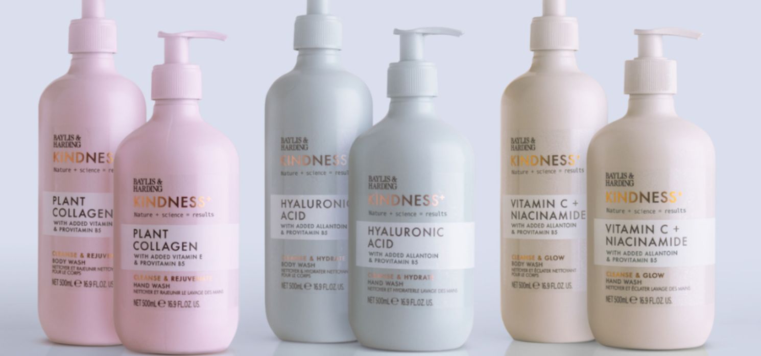 NOVÁ kolekcia Baylis & Harding Kindness+ vám prináša perfektnú kombináciu pri umývaní tela. Tieto preplňované receptúry, ktoré obsahujú buď kyselinu hyalurónovú pre hydratáciu, vitamín C pre lesk alebo rastlinný kolagén pre omladenie, sú vedecky vytvorené tak, aby pomohli dodať viditeľne zdravšiu a krásne vyzerajúcu pleť.