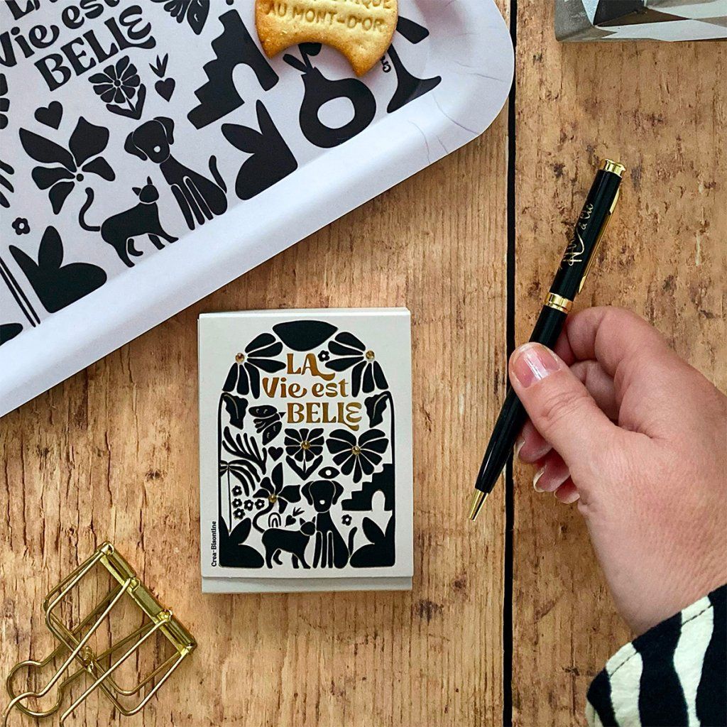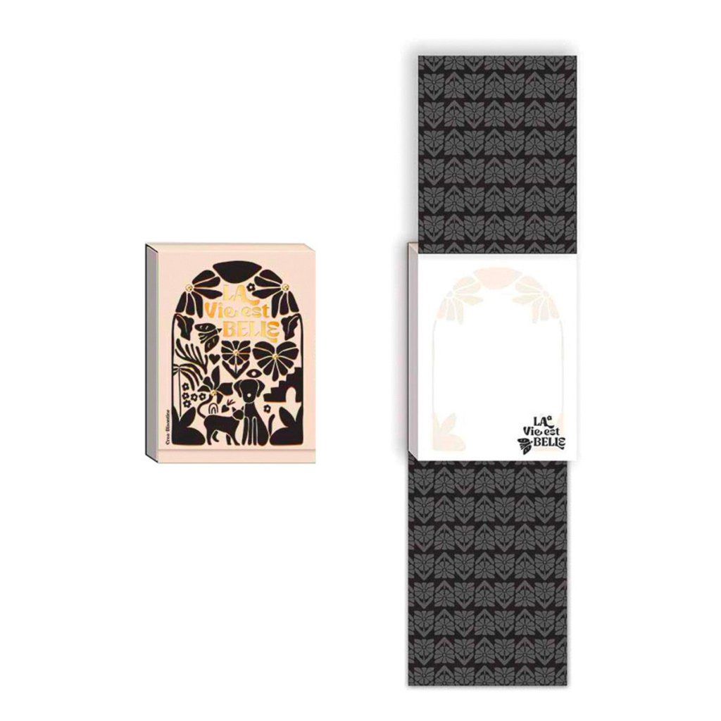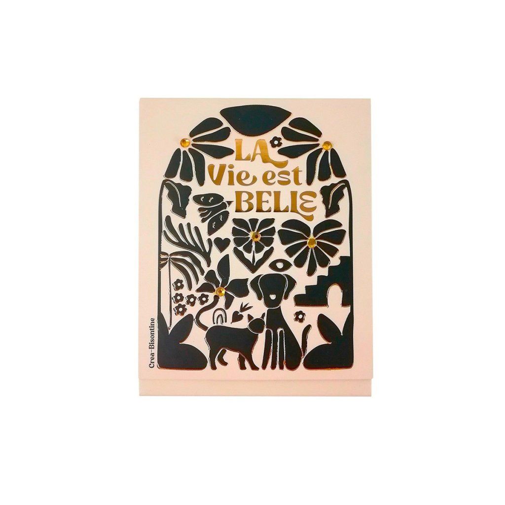 La vie est belle – život je krásny, tak si užívajte každý okamih. Tento štýlový vreckový zápisník od značky Hirondelles & Cie prináša inšpiratívne posolstvo v elegantnom grafickom prevedení s výraznými kontrastnými ilustráciami z dielne francúzskej autorky Créy Bisontine.