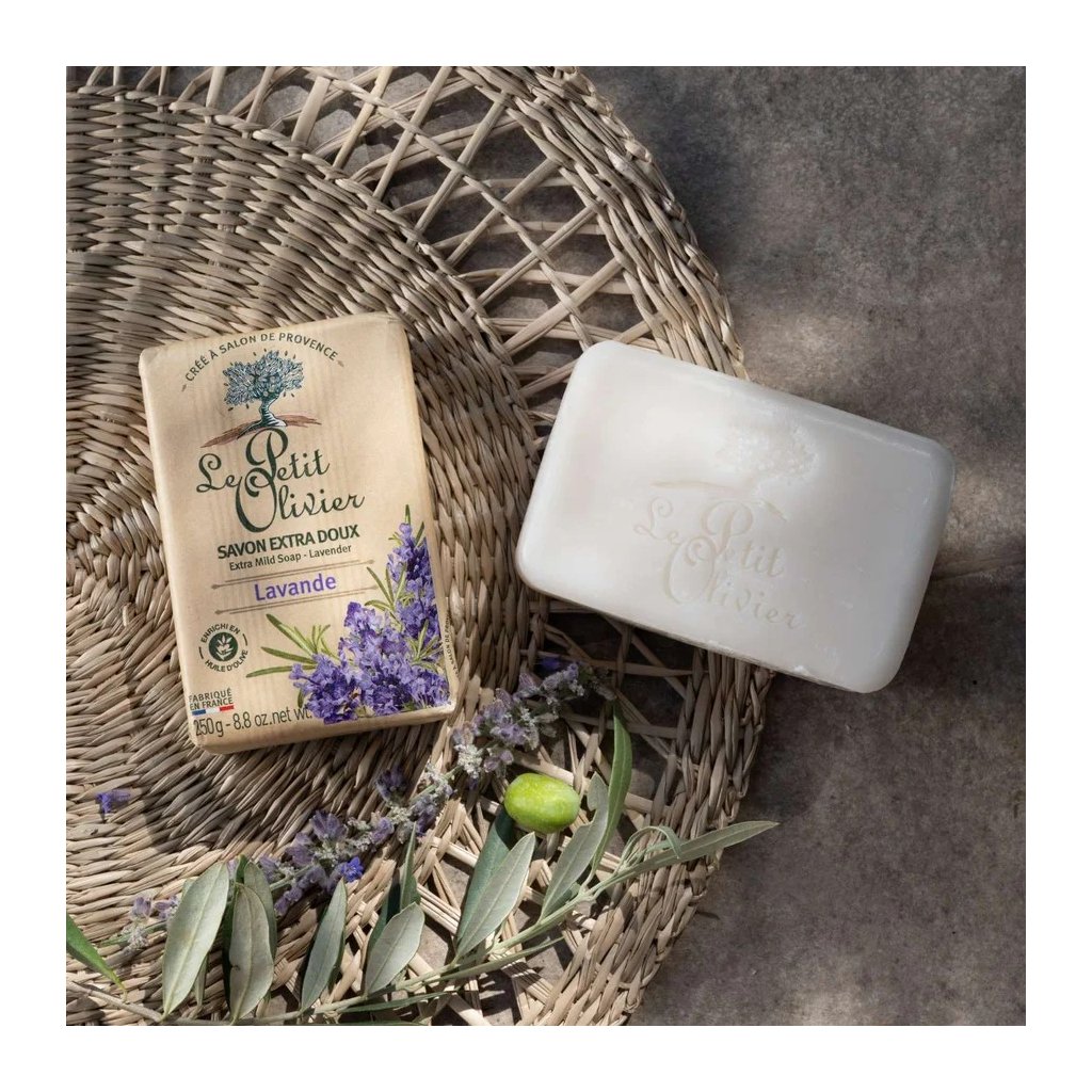 Extra jemné mydlo francúzskej značky Le Petit Olivier s kvetinovou vôňou levandule. Prírodné mydlo s olivovým olejom a prírodnými extraktmi. Hmotnosť 250g.