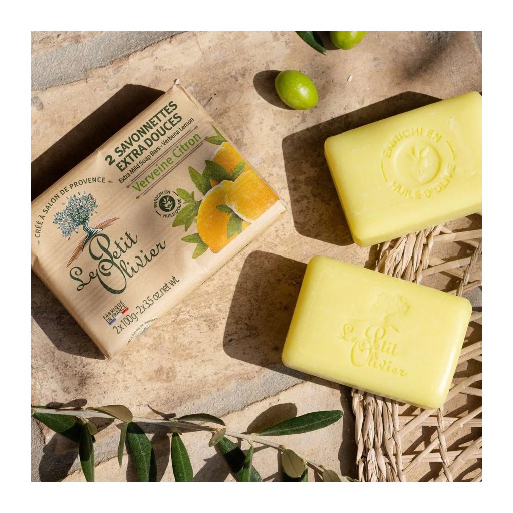 Extra jemné mydlo francúzskej značky Le Petit Olivier so sviežou vôňou verbeny a citrónu. Prírodné mydlo s olivovým olejom a prírodnými extraktmi. Balenie 2x100g.