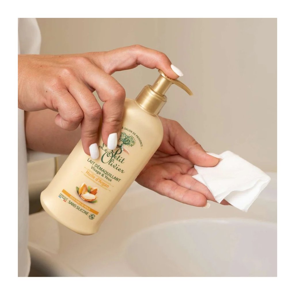 Le Petit Olivier Odličovací a čistící mlieko na oči a pleť s arganovým olejom, 200ml