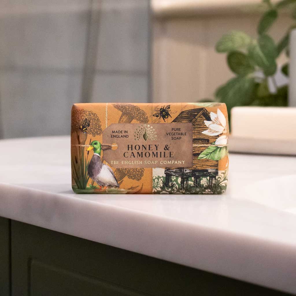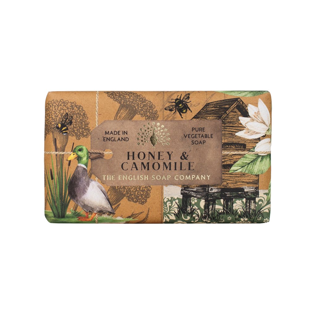 Doprajte si jemnú starostlivosť s tuhým mydlom Honey & Camomile od English Soap Company.