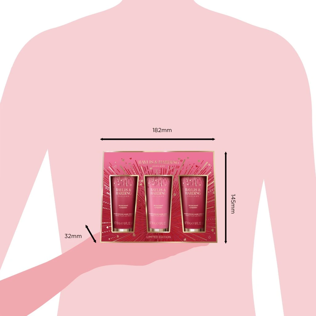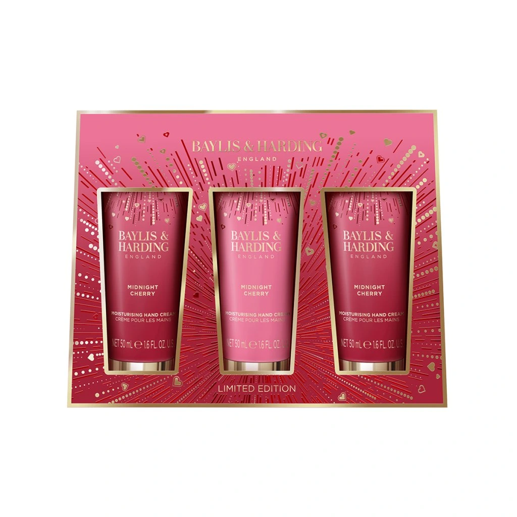 Midnight Cherry - súprava krémov na ruky, 3 ks darčeková sada 3 krémov na ruky so šťavnatou vôňou čerešní, mandlí a likéru