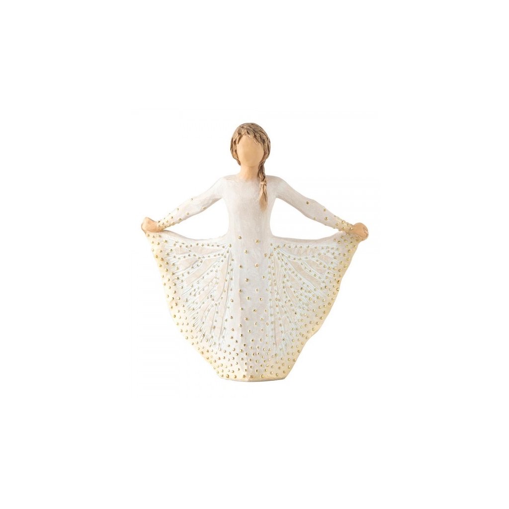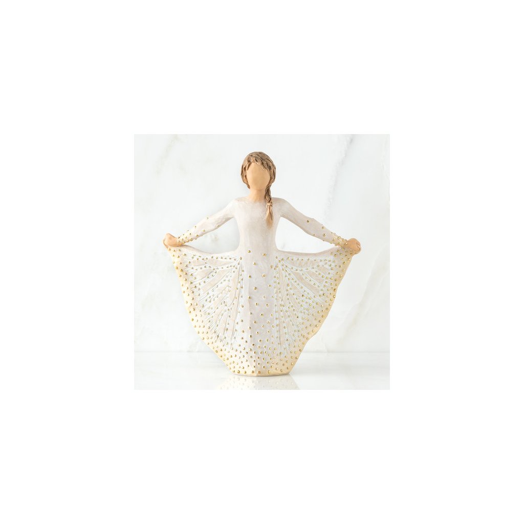 "Willow Tree je důvěrná, osobní linie ručně vyřezávaných figur. Každá z nich představuje vlastnost či sentiment, který nám pomáhá vážit si lidí kolem nás, léčit zraněné či objevit krásu okolního světa. Pro vyjádření emocí jsem použila pouze gest ... sklon hlavy, umístění ruky či natočení těla. Každá z figur pochází z mé originální dřevořezby. Doufám, že jednoduchost těchto figur vyjadřuje mír a klid nejen pro Vás, ale i pro ty, které milujete."