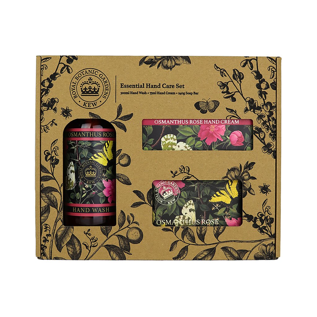 Doprajte sebe alebo svojim blízkym luxusnú starostlivosť o ruky s elegantnou darčekovou súpravou Osmanthus & Rose z kolekcie Kew Gardens. Táto starostlivo zostavená súprava obsahuje obľúbené produkty na každodennú hygienu a výživu pokožky rúk, zahalené do jemnej a exoticky kvetinovej vône. Svieže tóny bergamotu, mandarínky a ružového korenia sa prelínajú s nežným srdcom pivonky, marhule a osmanthu, zatiaľ čo základ z červeného cédra, ambry a pačuli dodáva vôni hrejivé tóny.
