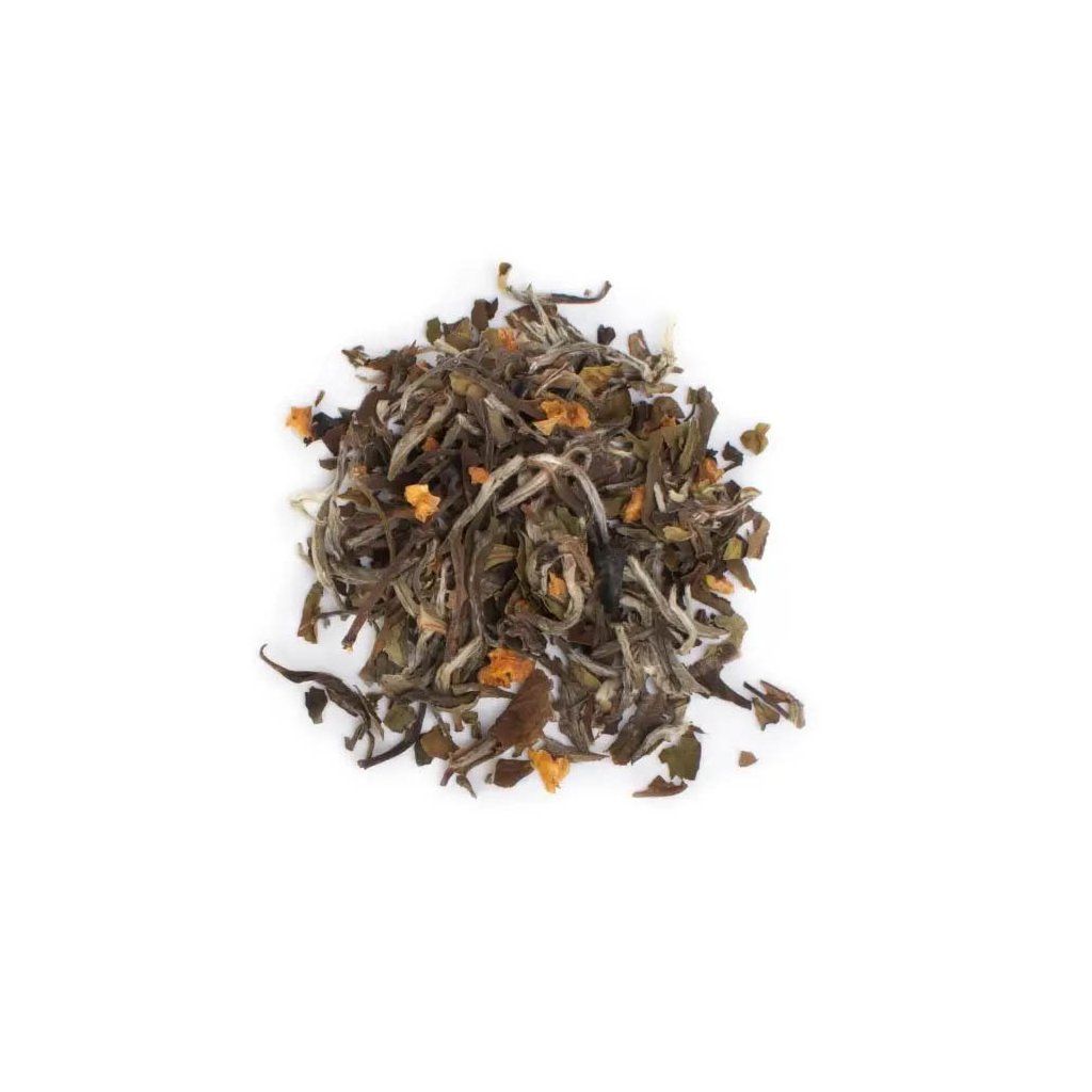 biele čaje (Čína 64 %, Nepál 20 %), prírodná grapefruitová aróma, kúsky pomaranča, korenie Timut 2 %