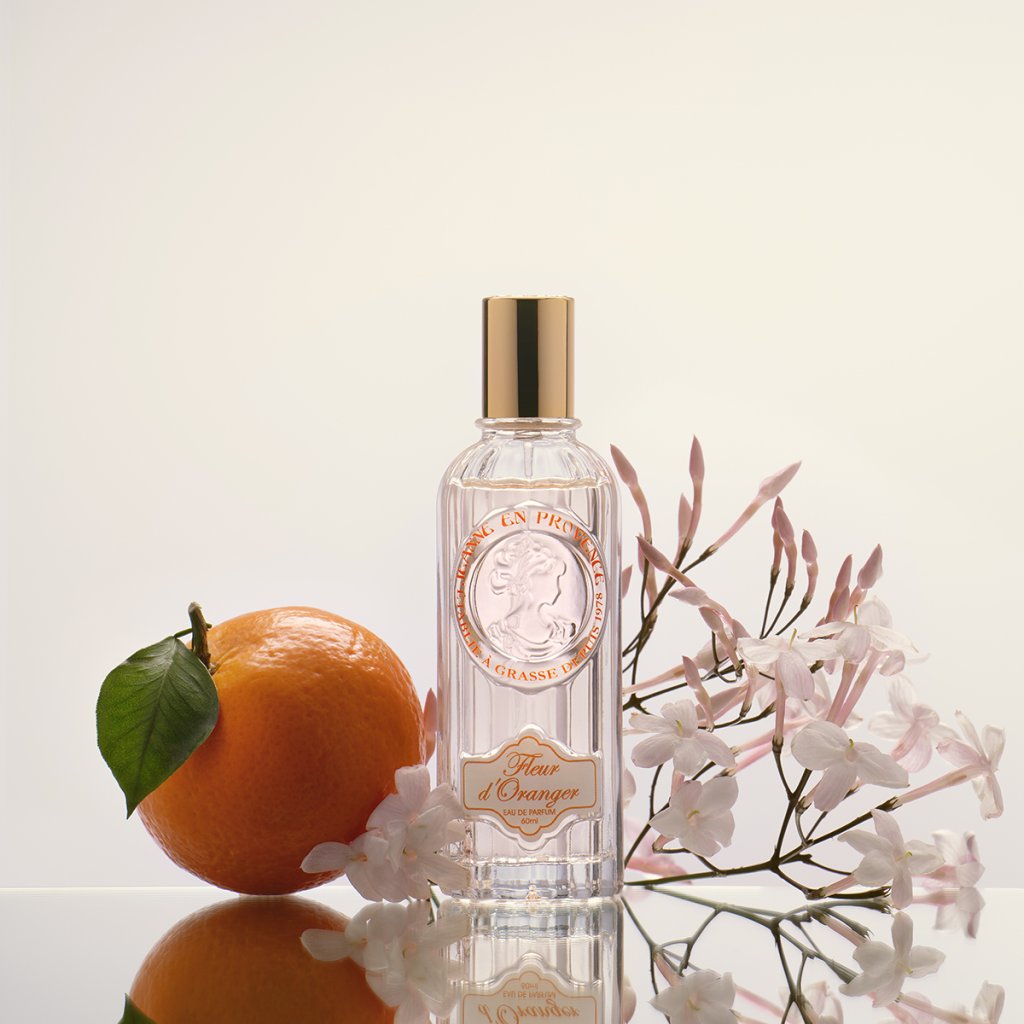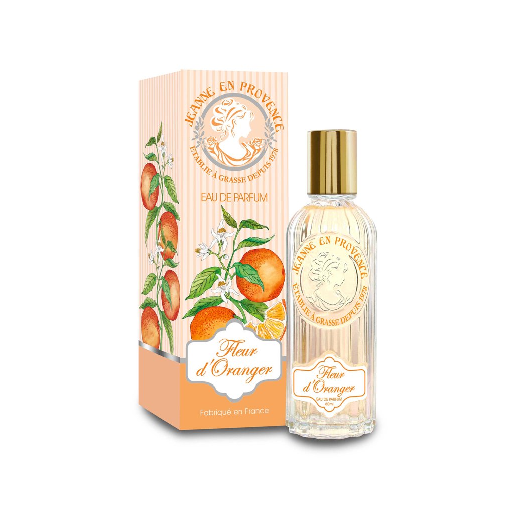 - Obal: Parfum je balený v papierovej škatuľke s ilustráciami pomarančových kvetov a logom značky Jeanne en Provence v žiarivých oranžových tónoch, ktoré odrážajú svieži a kvetinový charakter vône.