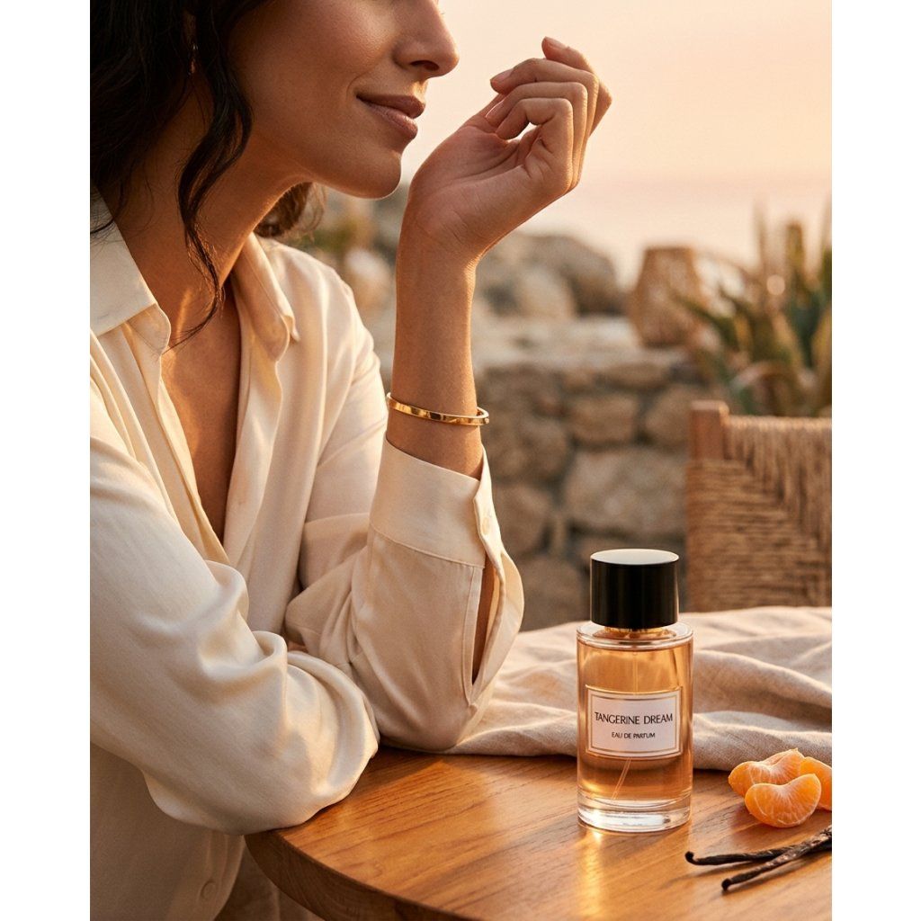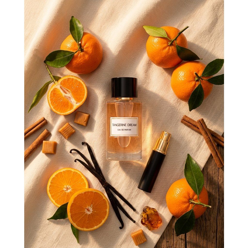 Tangerine Dream je luxusný francúzsky parfum, ktorý zachytáva atmosféru letného večera na plážovej terase, kde čas spomalí a každý okamih chutí po nekonečnom lete. Vôňa sa otvára iskrivým duetom citrónu a pomaranča, ktorý prechádza do zmyselných ovocných tónov s nádychom karamelu. Základ tvoria krémová vanilka, hrejivá ambra a elegantné drevité akordy, ktoré dodávajú vôni hĺbku a podmanivú intenzitu.