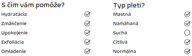 | Účinok: | hydratácia, upokojenie, zjednotenie |