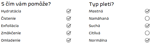 | Účinok: | exfoliácia, čistenie, hydratácia |