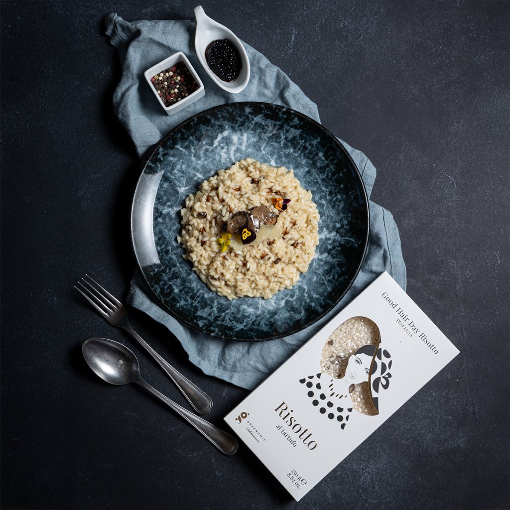 Keď chcete doma vykúzliť večeru ako z vyberanej talianskej reštaurácie, siahnite po Good Hair Day Risotto al Tartufo. Ryža Arborio pri varení vytvorí typicky krémovú konzistenciu, a k tomu nechýba chuť hľuzovky. Stačí pridať trochu olivového oleja, masla a parmezánu a počas pár minút máte na tanieri luxusné rizoto s jemnou hľuzovkovou vôňou a chuťou, ideálne na špeciálne príležitosti, romantickú večeru aj chvíle, kedy si chcete proste dopriať niečo výnimočné.