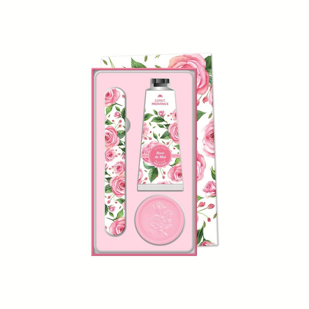 Praktická a elegantná darčeková súprava starostlivosti o ruky od značky Esprit Provence s jemnou vôňou ruží je ideálna na každodenné použitie aj ako milý darček. Kombinuje základné produkty na starostlivosť o ruky aj nechty, ktoré pomáhajú udržať pokožku čistú, hydratovanú a upravenú.
