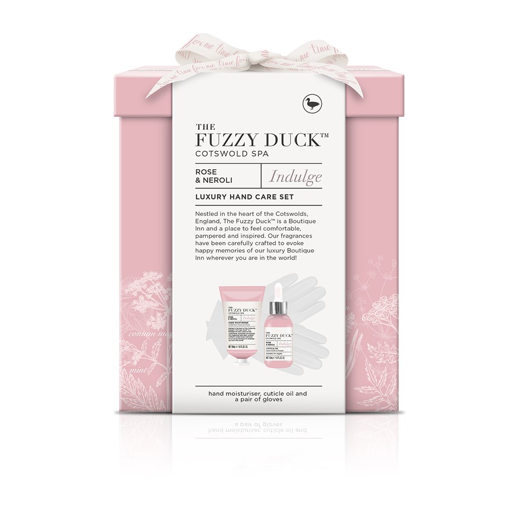 Darčeková sada obsahuje olej na nechtovú kožtičku a hydratačný krém na ruky s uvoľňujúcou vôňou ryže a neroli. A bavlnené rukavice.