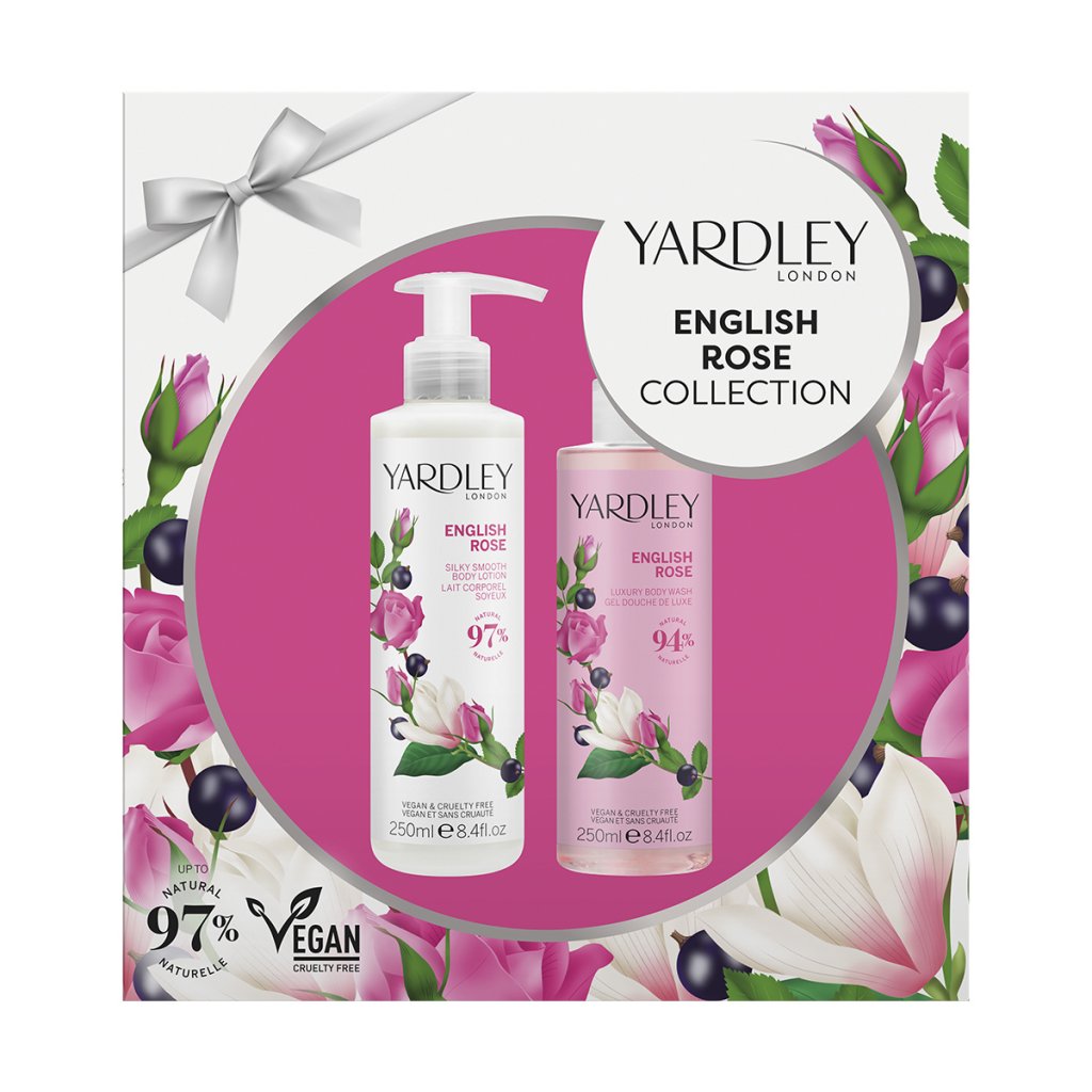 Sada Yardley English Rose Collection prináša jemnú starostlivosť s ikonickou vôňou anglickej ruže. Sprchový gél šetrne čistí a hydratuje pokožku, zatiaľ čo telové mlieko ju zanechá hebkú, vyživenú a prevoňanú. Vôňa English Rose je svieža a kvetinová – otvára sa iskrivými citrusovými tónmi a ruží s akordom čaju, v srdci rozkvitá púčik ruže, magnólia, fialka a čierne ríbezle a v základe sa rozvíjajú hrejivé akordy dreva, pačuli a mošusu.