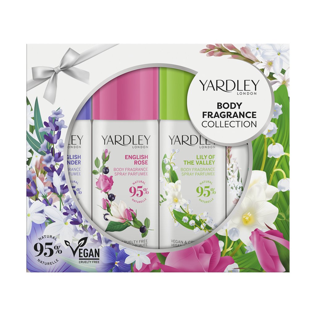 Obdarujte seba alebo svojich blízkych voňavou darčekovou súpravou od Yardley London! Táto kolekcia telových sprejov v klasických kvetinových vôňach – anglická levanduľa, anglická ruža, jazmín a konvalinka – je ideálna na okamžité osvieženie kedykoľvek počas dňa. Vďaka praktickej veľkosti sa zmestia do každej kabelky.