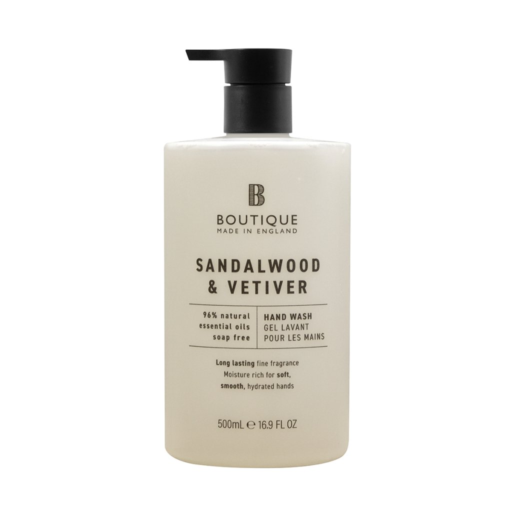 Doprajte pokožke rúk každodennú starostlivosť s tekutým mydlom Boutique Sandalwood & Vetiver, ktoré šetrne čistí pokožku a zároveň ju hydratuje a vyživuje. Jemne krémové zloženie je obohatené o mokraďkový olej, známy svojimi regeneračnými a vyživujúcimi účinkami, a je vhodné aj pre citlivú pokožku. Hrejivá vôňa santalového dreva a vetiveru sa snúbi s tónmi bergamotu a cédru a prináša pocit pokoja, uvoľnenia a komfortu.