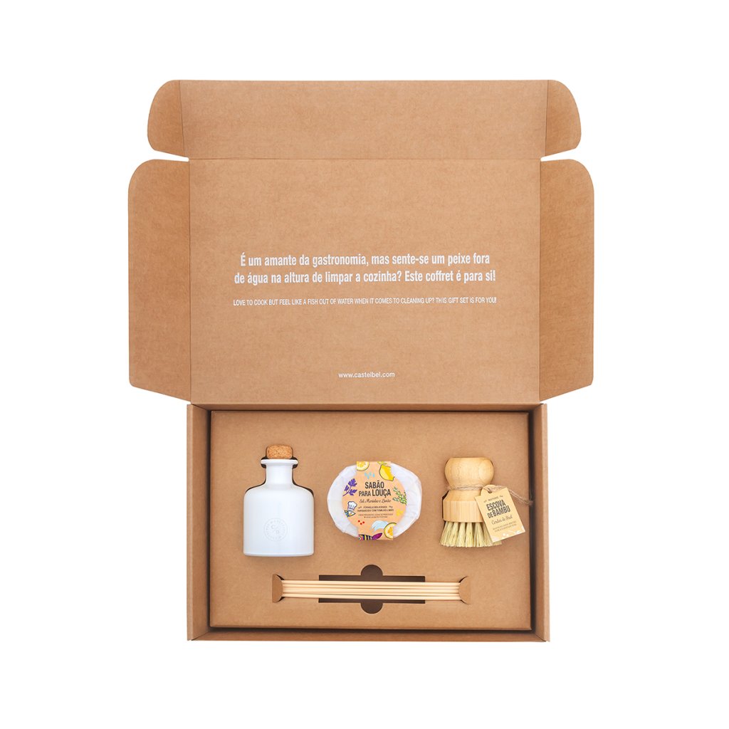 Premeňte svoju kulinársku ríšu na čisté prostredie pomocou našej limitovanej kolekcie obsahujúcej 2 základné produkty do kuchyne a elegantný voňavý difuzér. Táto súprava stelesňuje udržateľnosť a zároveň si zachováva dokonalý štýl a funkčnosť. Kefa na riad s bambusovou rukoväťou a sisalovými štetinami účinne odstraňuje nečistoty a zvyšky jedla z riadu. Spolu s mydlom v tvare polovičného citróna sú skvelou dvojicou na umývanie riadu. Nechýba ani vonný difuzér, ktorý nádherne prevonia priestor.