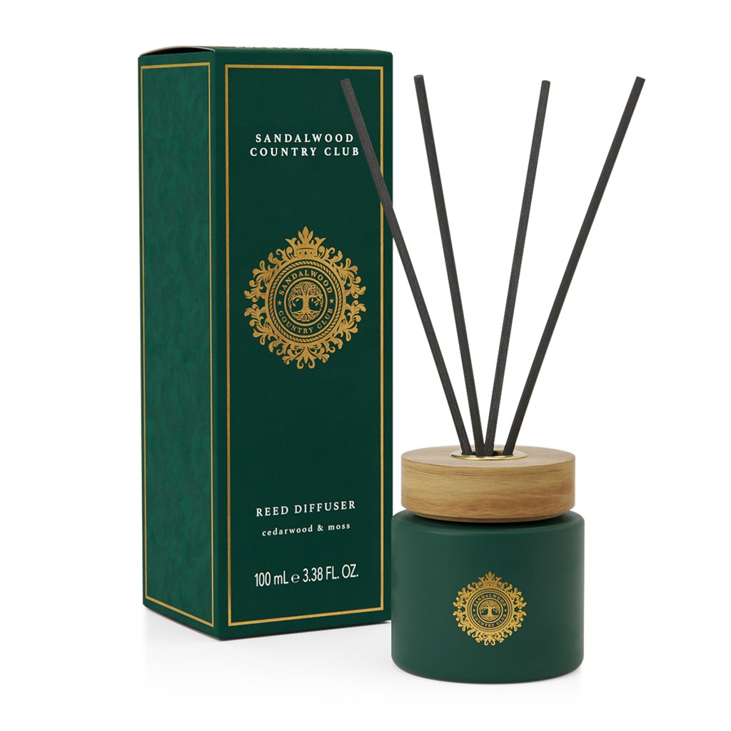 Luxusný difuzér s jemnou, zemitou vôňou machu a cédrového dreva so sviežimi tónmi verbeny a zelenej trávy.