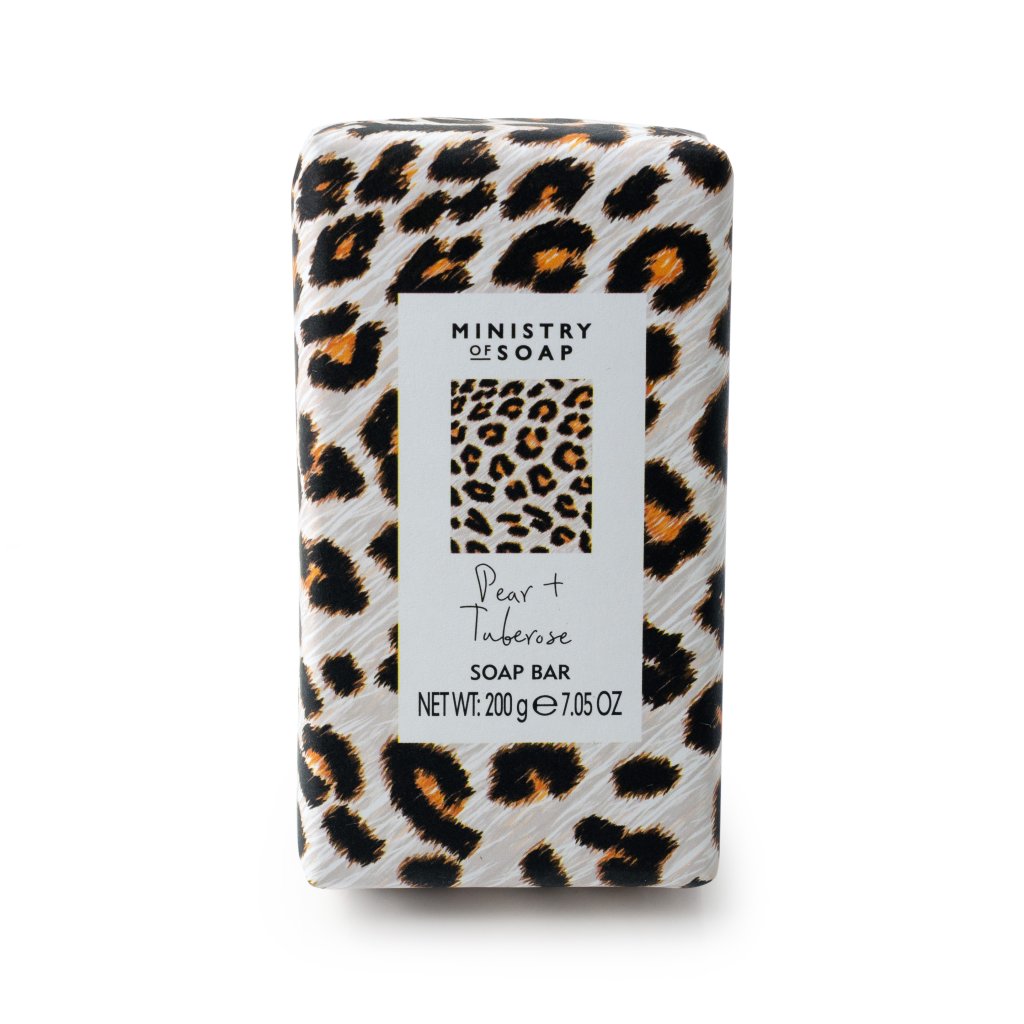 Vyživujúce, trikrát jemne mleté mydlo s vôňou hrušky a tuberózy. Zanecháva pokožku čistú, hebkú a príjemne prevoňanú. V krásnom darčekovom papieri so zvieracou potlačou.