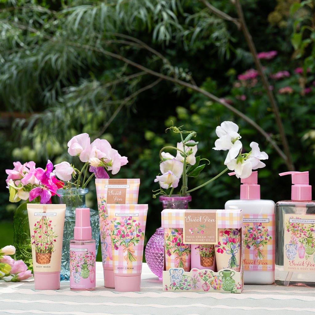Darčeková súprava Sweet Pea obsahuje tri krémy na ruky v praktickom balení, ideálne do kabelky, do kancelárie aj na cesty. Každá tuba je zdobená jemnými ručne maľovanými ilustráciami kvetov hrachu, ktoré podčiarkujú romantický, typicky britský charakter kolekcie. Bohaté zloženie s bambuckým a kakaovým maslom, olejom z pupalky a glycerínom poskytuje rukám intenzívnu výživu a hydratáciu, zatiaľ čo svieža kvetinová vôňa hrachu so zimolezom, tónmi jazmínu, gardénie, zelených lístkov a jemného pižma prináša radostnú letnú arómu po celý rok.