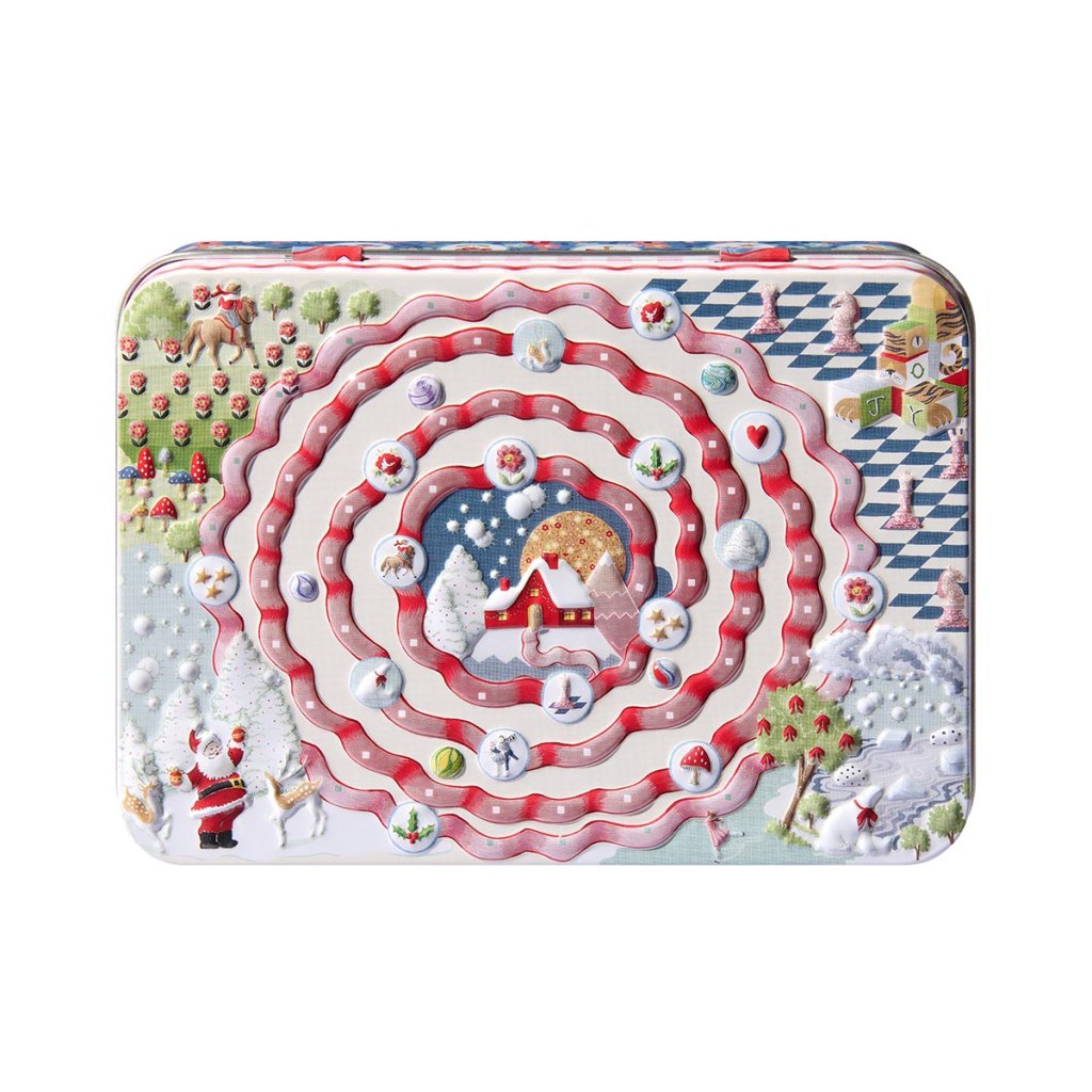 A pretože Vianoce sú aj o radosti a smiechu, nájdete vnútri tiež originálne hracie karty Lady Luck a dve kocky pre dlhé zimné večery. To všetko je ukryté v dekoratívnej plechovej krabičke.