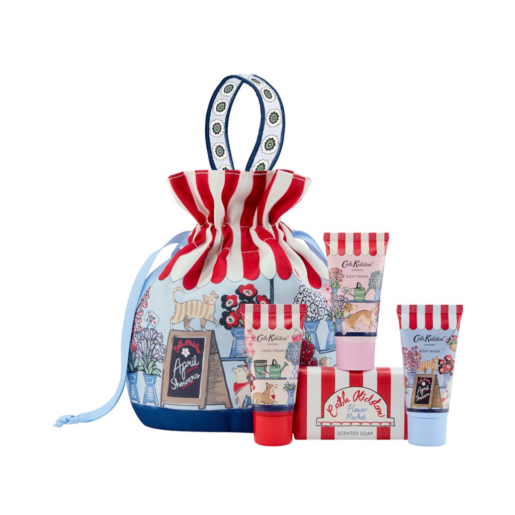 Roztomilá a štýlová darčeková taštička Flower Market Pouch od Cath Kidston ukrýva kompletnú sadu telovej starostlivosti, ktorá poteší zmysly aj pokožku. Obsahuje sprchový gél, telové mlieko, krém na ruky a tuhé mydlo, všetko prevoňané šťavnatou vôňou Fruit Basket s esenciálnymi olejmi zo sladkého pomaranča a bergamotu.