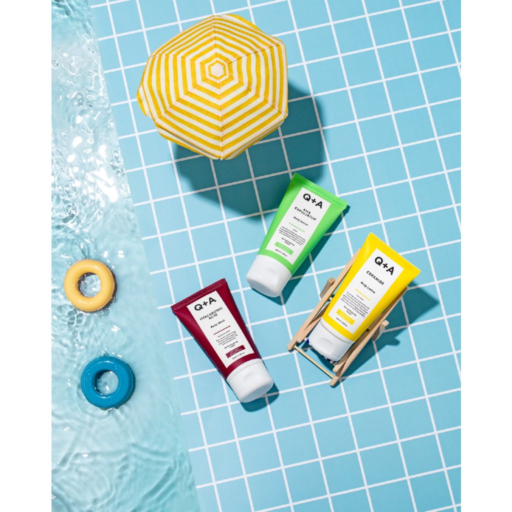 - Pre lepšie výsledky kombinujte s Q+A Hydratačným mliekom na vlhkú pokožku s kyselinou hyalurónovou.