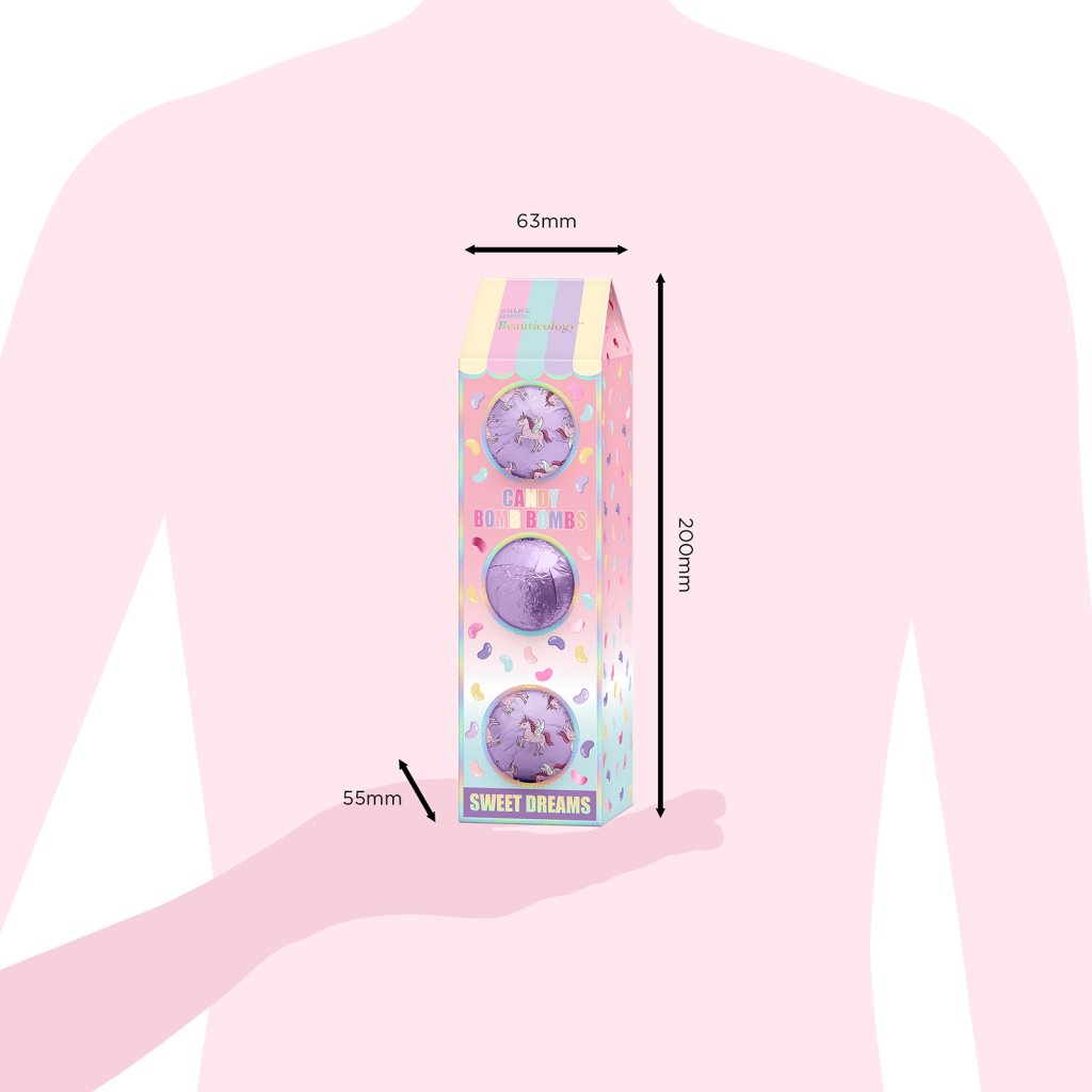 Unicorn - sada šumivých gulí, 3 ks hravé darčekové balenie šumivých kúpeľových bômb so sladkou vôňou cukroviniek, 3x100 g