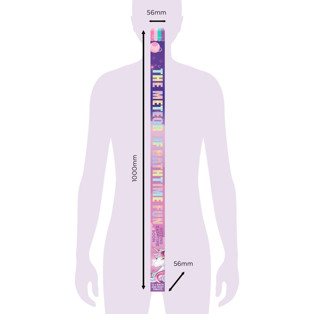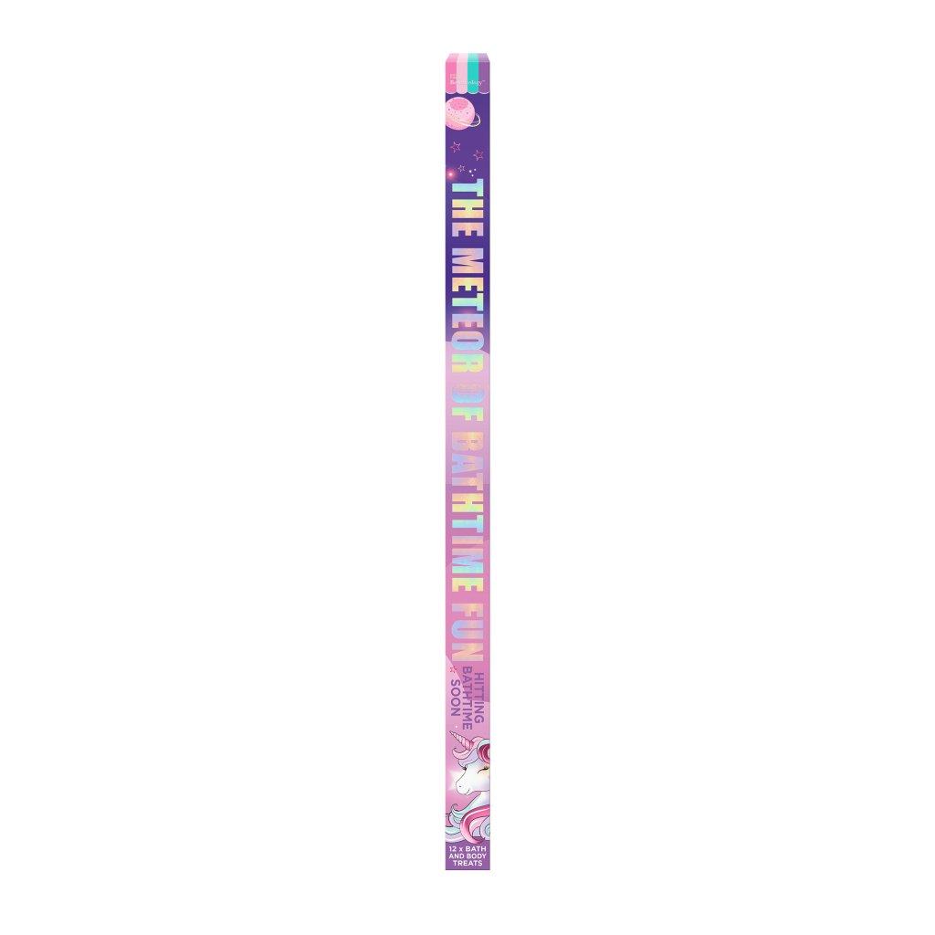 Pripravte sa na explozívnu dávku kúpeľovej zábavy! Táto originálna darčeková súprava ukrýva 12 hravých prekvapení, ktoré premenia každý okamih v kúpeľni na voňavú galaktickú cestu. Fantazijný dizajn s jednorožcami, hviezdami a dúhovými planétkami zaujme na prvý pohľad a nadchne každého milovníka kúpeľových rituálov.