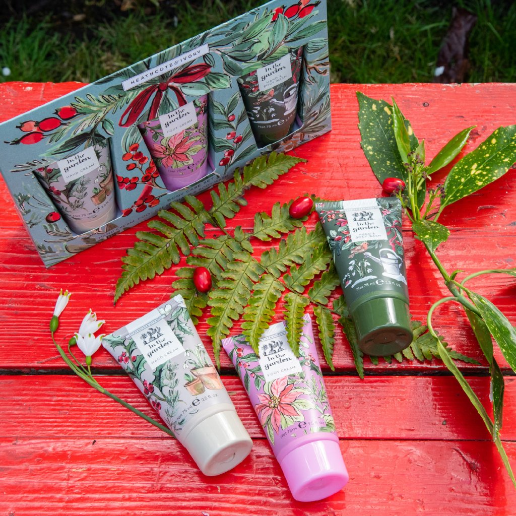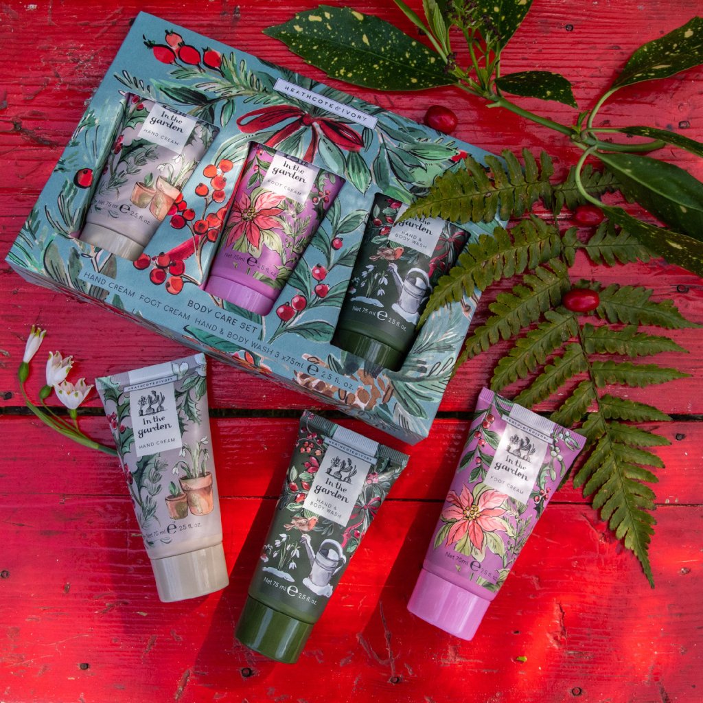 Sprchový gél s antioxidantom z kvetov bazy čiernej, ostružinami a rebarborou zanechá pokožku sviežu a hladkú. Krém na ruky s vôňou rebarbory a mäty je obohatený o bambucké maslo, vitamín E a provitamín B5, ktoré hydratujú a vyživujú suchú pokožku. Krém na nohy s vôňou záhradnej ruže, obohatený o mätový olej, tea tree a bambucké maslo, poskytuje unaveným chodidlám úľavu a dlhotrvajúcu hebkosť.
