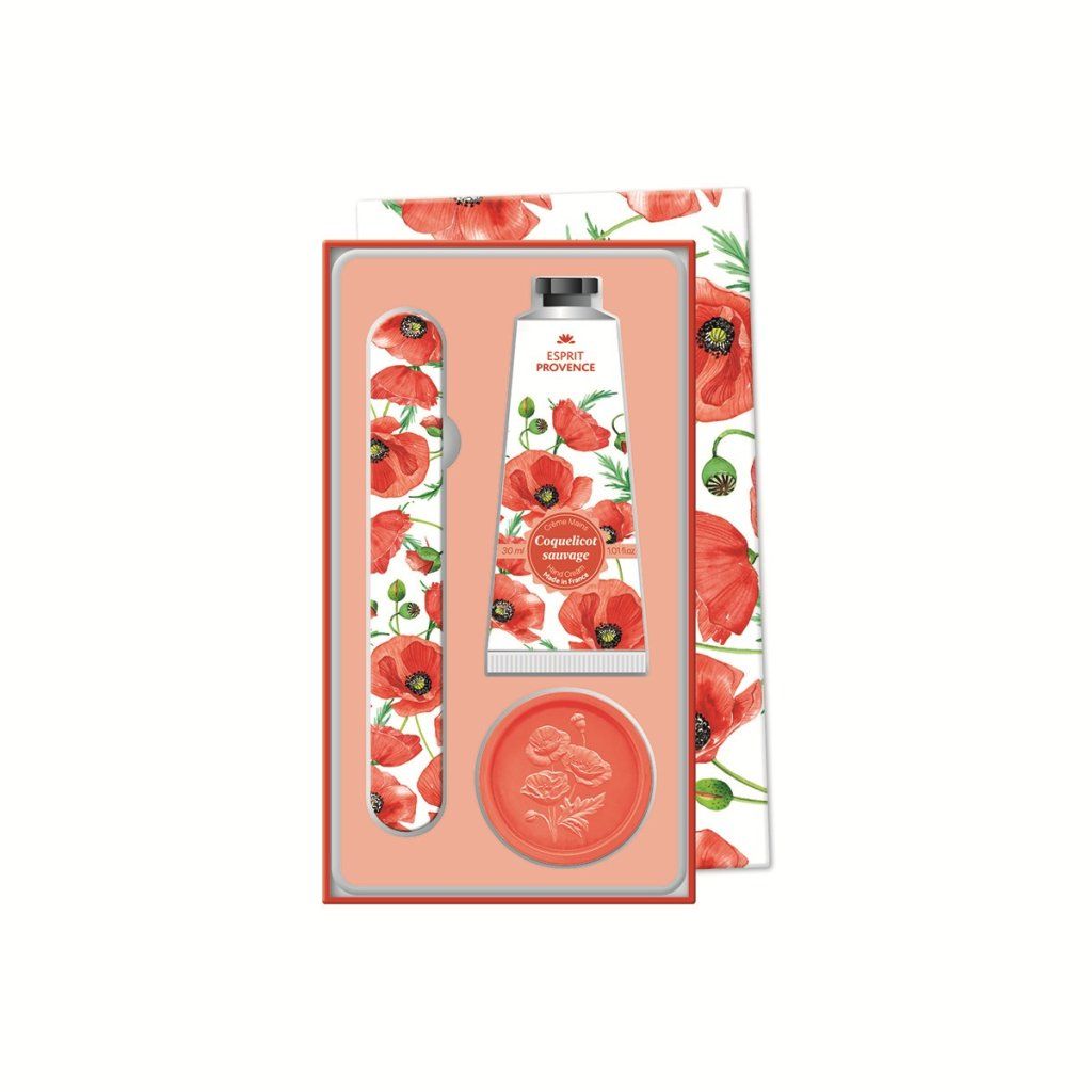 Elegantná darčeková súprava na starostlivosť o ruky od značky Esprit Provence s jemnou vôňou vlčieho maku predstavuje ideálny tip na darček aj praktického spoločníka na každodennú starostlivosť o ruky. Sada obsahuje všetko potrebné pre čisté, hydratované a upravené ruky – krém na ruky, tuhé mydlo a pilník na nechty v kompaktnom prevedení vhodnom aj na cesty.