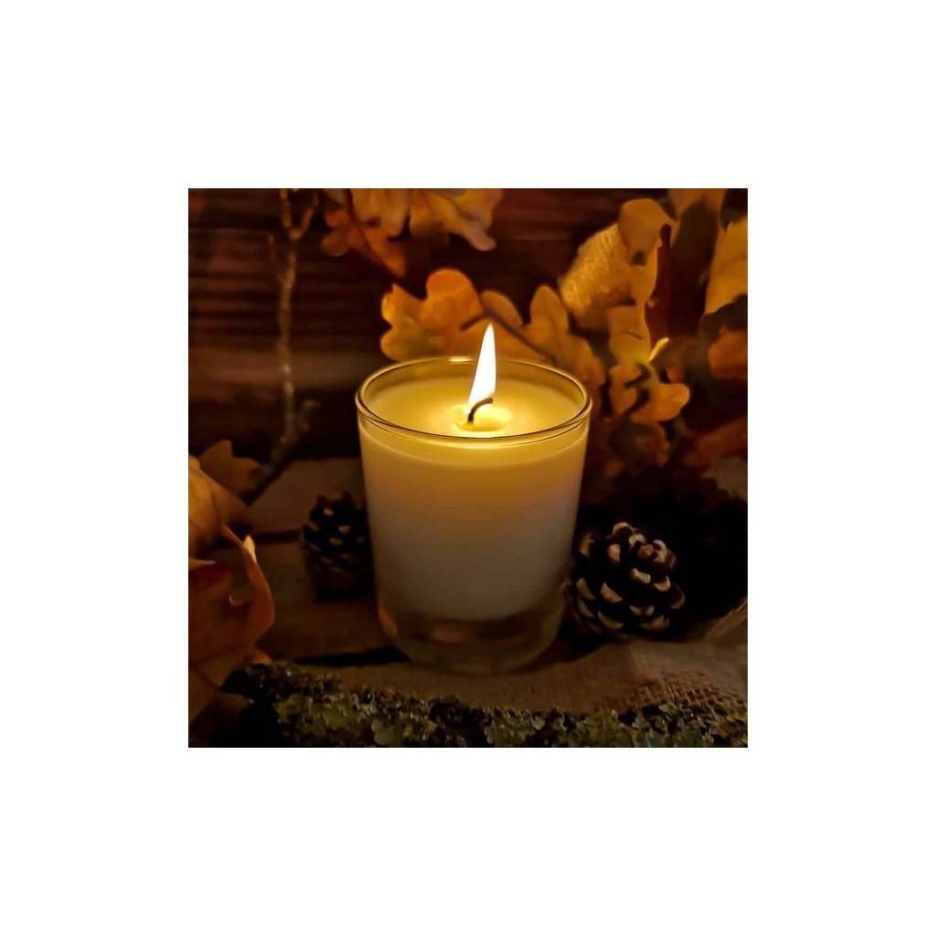 - Vonná sviečka v nádobe zo skla