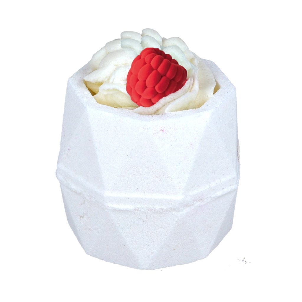 Sladká malina ukrytá v elegantnej bielej bombe prinesie do kúpeľa sviežosť aj štipku luxusu. Po vhodení do vody sa začne jemne rozpúšťať a uvoľní šťavnatú vôňu čerstvo odtrhnutých malín, ktorú dopĺňajú esenciálne oleje zo sladkého pomaranča a kadidla. Tie pôsobia povznášajúcim a upokojujúcim dojmom, zatiaľ čo bambucké maslo hýčka pokožku a zanecháva ju zamatovo hebkú.