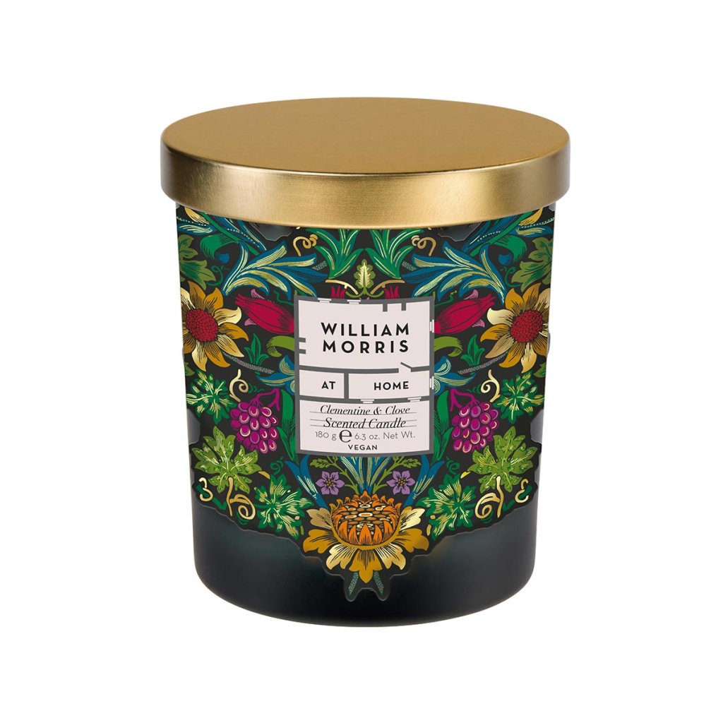Prevoňajte domov sviatočnou atmosférou s dekoratívnou sviečkou v dizajne Williama Morrisa. Sladká mandarínka, hrejivý klinček a štipka škorice rozžiari interiér tradičnou vianočnou vôňou, ktorá prináša pocit útulna a radosti. Sklenená dóza s viečkom a umeleckým motívom Sunflower Swan krásne ozdobí krbovú rímsu aj sviatočný stôl. Po dohorení ju jednoducho znovu použite ako dózu na drobnosti alebo malú vázičku.