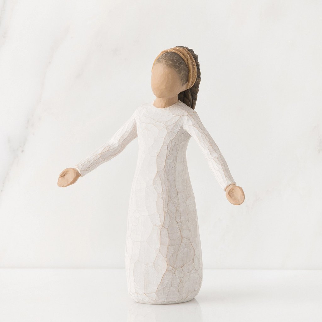 "Dni plné požehnanie." Autorka Susan Lordi o figúrke "Požehnanie": ,, Chcela som, aby táto figúrka vyjadrovala priazeň, dobrú vôľu. Jej účes a zlatisto melírované vlasy naznačujú auru oslavy. Figúrka "Požehnanie" je tak trochu pripomienka, že by sme nemali zabúdať každý deň ďakovať. Tento kúsok prihovára akúkoľvek vierou a oslavuje bohatstvo v rozmanitosti našej kultury.'' Susan Figúrka Willow Tree, výška 14 cm.