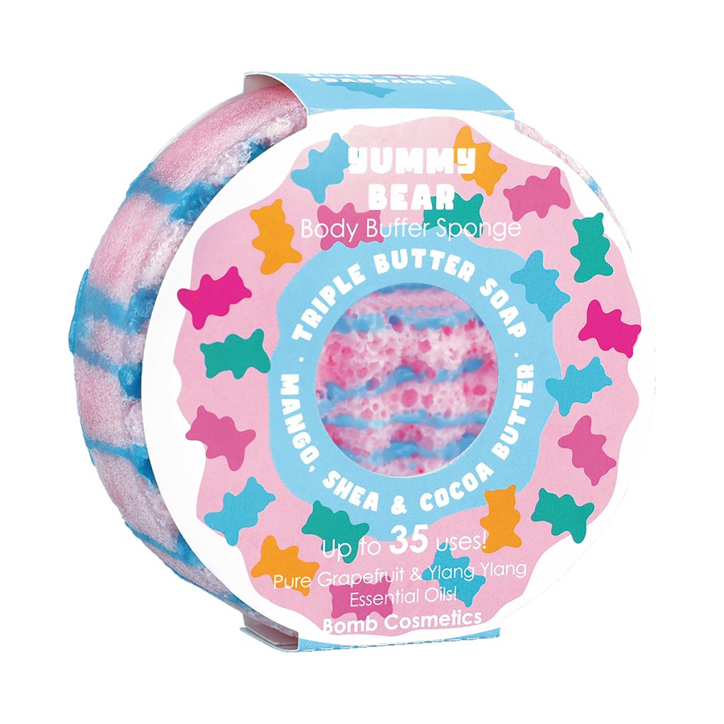 Vráťte sa v sprche späť do detstva! Mydlová hubka Yummy Bear vonia ako vrecúško gumových medvedíkov, ktoré ste práve otvorili – sladko, hravo a úplne neodolateľne. Len čo špongiu namočíte, farebný „prstenec“ sa premení na bohatú penu, ktorá prevonia celú kúpeľňu. Čisté esenciálne oleje z grapefruitu a ylang-ylang rozmaznajú zmysly, zatiaľ čo zloženie s mangovým, bambuckým a kakaovým maslom zanechá pokožku jemnú, vláčnu a hebkú.